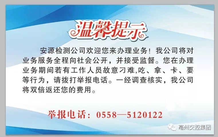 專(zhuān)屬名片正面以安源檢測(cè)公司的窗口形象為背景,印有服務(wù)項(xiàng)目、宗旨理念、咨詢電話、公司地址等;背面印有安源檢測(cè)公司給予車(chē)主的溫馨提示以及舉報(bào)電話,具有攜帶方便、內(nèi)容具體、形式新穎的特點(diǎn)。