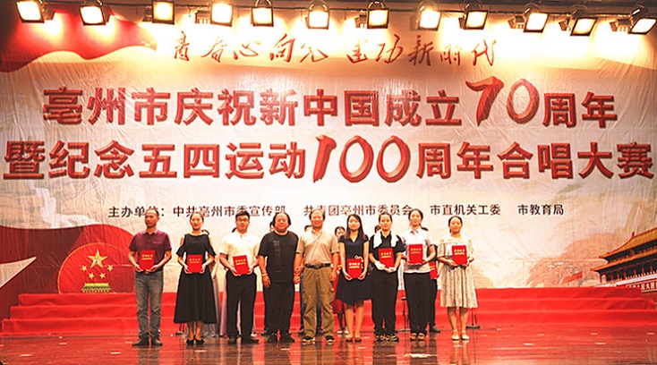 6月19日,在市委宣傳部、共青團(tuán)亳州市委員會等聯(lián)合舉辦的“青春心向黨 建功新時代”慶祝新中國成立70周年暨五四運(yùn)動100周年主題合唱比賽中,集團(tuán)代表隊獲得三等獎。