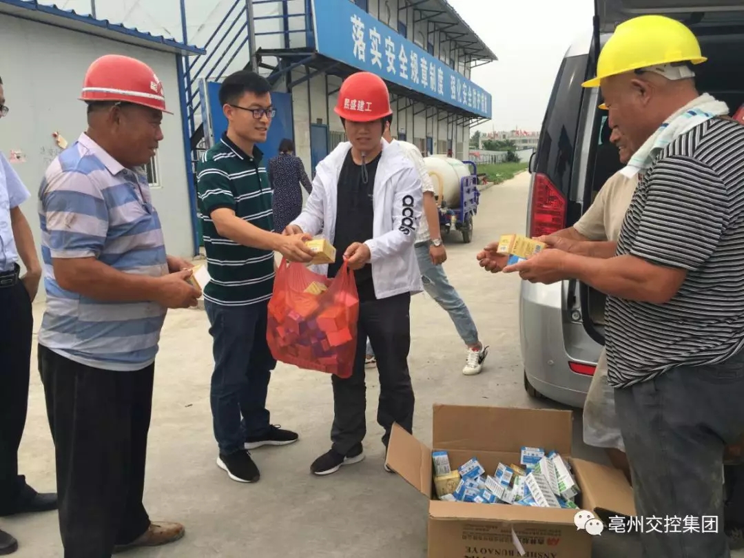 7月3日下午,和諧中建副總經(jīng)理方杰、財務(wù)負責人楊文亮赴在建李門樓項目、再生資源項目、花海書舍項目和亳州公路客運高鐵樞紐站項目,為奮戰(zhàn)在一線的員工送來風油精、十滴水、藿香正氣水、西瓜和飲用水,在充分考慮員工的真正訴求上精心準備防暑降溫物品,這個夏天,和諧中建送的不僅是清涼,更是一份關(guān)懷,傳遞了公司領(lǐng)導(dǎo)對員工濃濃的關(guān)愛。