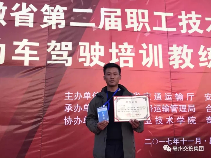 2017年全省機動車駕駛培訓(xùn)教練員技能大賽于11月8日在巢湖隆重舉行,來自全省16個地市的19支代表隊參加比賽,亳州市交通運輸局何青峰處長帶領(lǐng)亳州市代表隊參加比賽,安行天下教練員唐強隨隊出征。