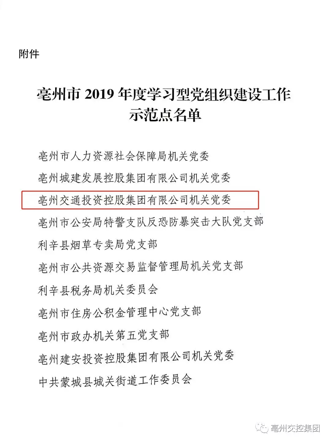 近日,中共亳州市委宣傳部印發(fā)了《關(guān)于授予市人力資源社會(huì)保障局機(jī)關(guān)黨委等11個(gè)黨組織為2019年度學(xué)習(xí)型黨組織建設(shè)工作示范點(diǎn)的通知》(亳宣通〔2019〕31號(hào))文件,交控集團(tuán)機(jī)關(guān)黨委榮獲全市“2019年度學(xué)習(xí)型黨組織建設(shè)工作示范點(diǎn)”稱號(hào)。