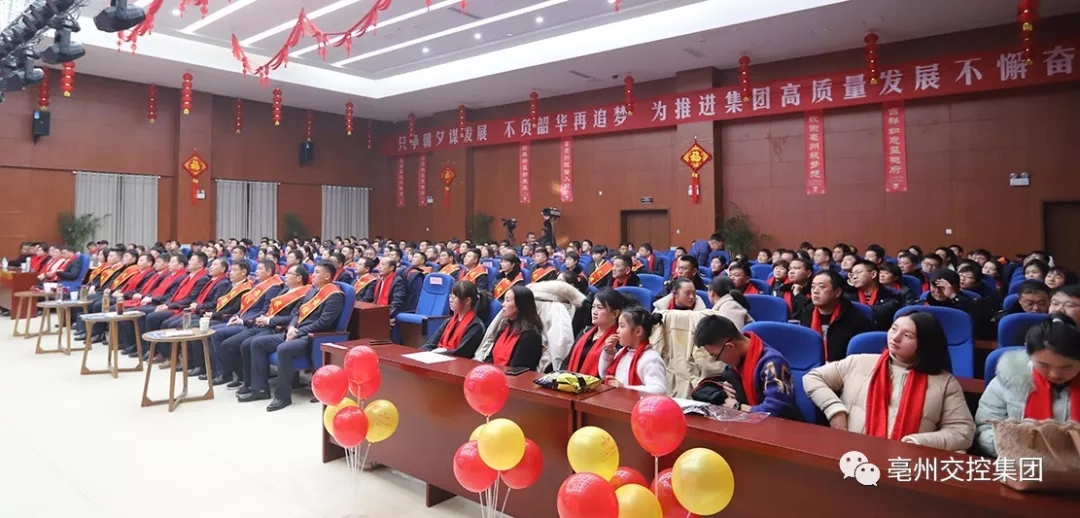 1月19日,亳州交控集團2019年度表彰大會暨2020年迎新春文藝匯演隆重舉行。集團黨委書記、董事長王鍇,黨委副書記、總經(jīng)理劉超,黨委委員、副總經(jīng)理王玉富,財務(wù)總監(jiān)董雷以及受表彰的先進個人和集體代表,子公司主要負責人、職工代表等共同參加了本次大會。