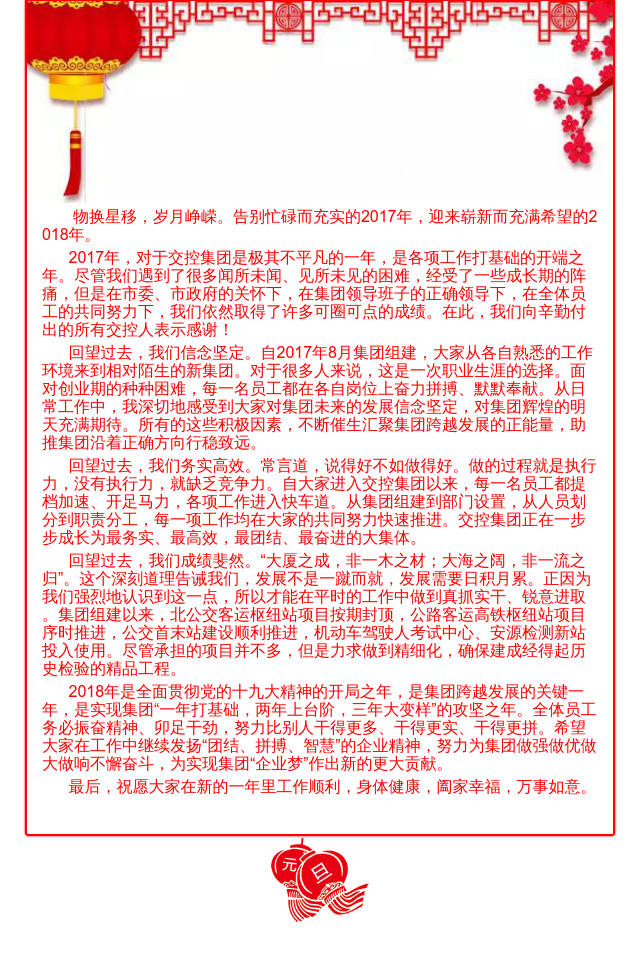 新起點(diǎn)、新征程——亳州交控集團(tuán)王鍇董事長(zhǎng)2018年新年致辭