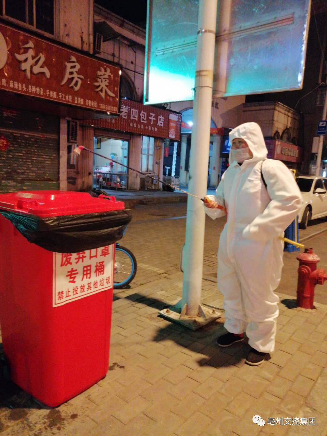 清晨,天空中剛泛起第一縷光,馬路已經(jīng)被環(huán)衛(wèi)工人打掃干凈,來迎接嶄新的一天。結(jié)束了早間的普掃,在稍作休息后另一群環(huán)衛(wèi)工作者換上白色防護(hù)服,背上裝有消毒液噴霧器,開始了另一項(xiàng)工作——對馬路上的垃圾桶進(jìn)行消毒。由于消毒工作的特殊性,每個路段只能安排一個人負(fù)責(zé),他們在每天的早上、中午、晚上進(jìn)行消毒,每次消毒近一百個垃圾桶,背著消毒水行走將近6公里。自春節(jié)以來他們每天重復(fù)著相同的動作,配消毒水、背上噴霧器、上下?lián)u動壓力桿,對路段上的垃圾桶進(jìn)行消毒,一直堅持著,沒有退縮,他們就是馬路上的“白衣戰(zhàn)士”,默默付出,不求回報!