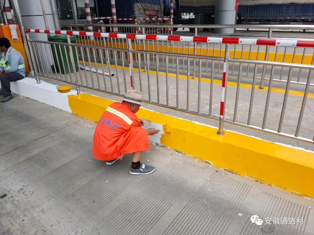 309收費站對工程進度嚴格把好三道關:一是嚴把刷漆質量關,要求施工人員嚴格按項目要求規(guī)范使用合格的油漆,并按科學比例進行調配使用,保證粉刷質量及夜間反光效果;二是嚴把施工流程關,安排專人全程監(jiān)督施工過程,嚴格按照工藝流程施工,鏟漆皮、打磨表面、修補缺損、粉刷油漆,每一道工序完成后都要經(jīng)過現(xiàn)場驗收合格才能進行下一步施工;三是嚴把施工安全關,要求施工前,必須關閉車道,擺放施工安全警示標志,所有施工人員在車道施工期間全部著反光背心,嚴格按照規(guī)定作業(yè),確保安全施工,文明作業(yè)。