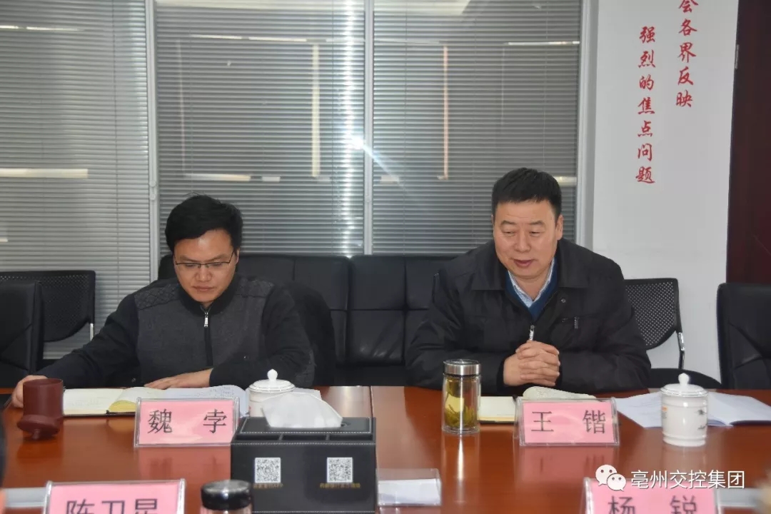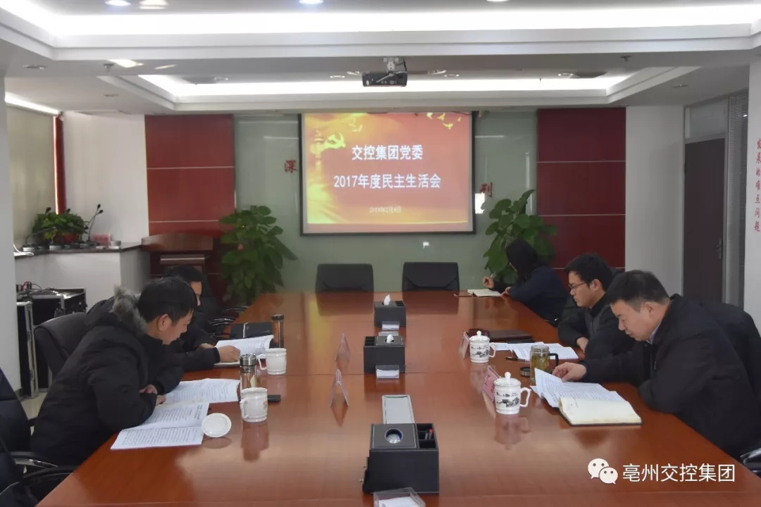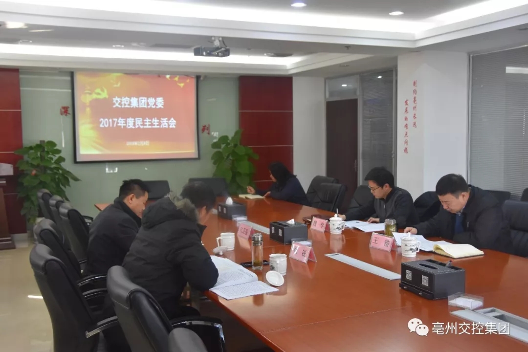 2月8日下午,交控集團黨委召開2017年度民主生活會。集團黨委書記、董事長王鍇同志主持會議,市委督導(dǎo)組第七組陳衛(wèi)星同志、楊銳同志到會指導(dǎo),集團黨委領(lǐng)導(dǎo)班子成員參加會議。