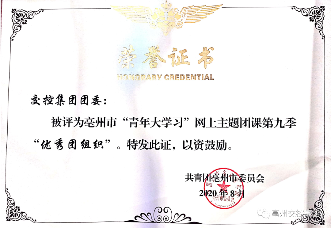 近日,團市委印發(fā)了《關(guān)于青年大學習網(wǎng)上主題團課第九季開展情況的通報》,集團團委獲評“優(yōu)秀團組織”。