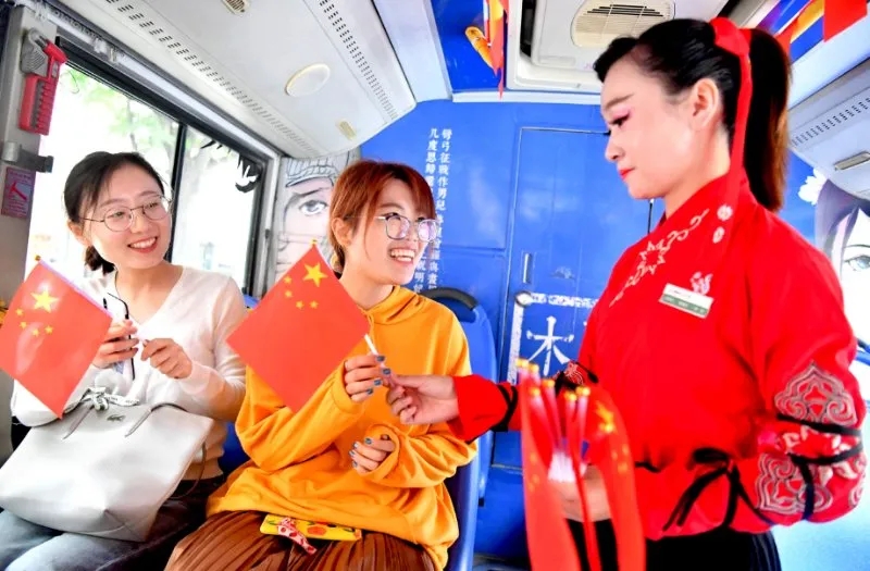當(dāng)日,安徽省亳州交控集團(tuán)組織公交5路木蘭線駕駛員開展“紅旗飄飄迎國(guó)慶”主題活動(dòng),公交車內(nèi)都懸掛起了五星紅旗,公交車駕駛員還沿途為乘客送上小紅旗和愛心貼紙,讓市民提前感受到國(guó)慶節(jié)的喜慶氣氛。