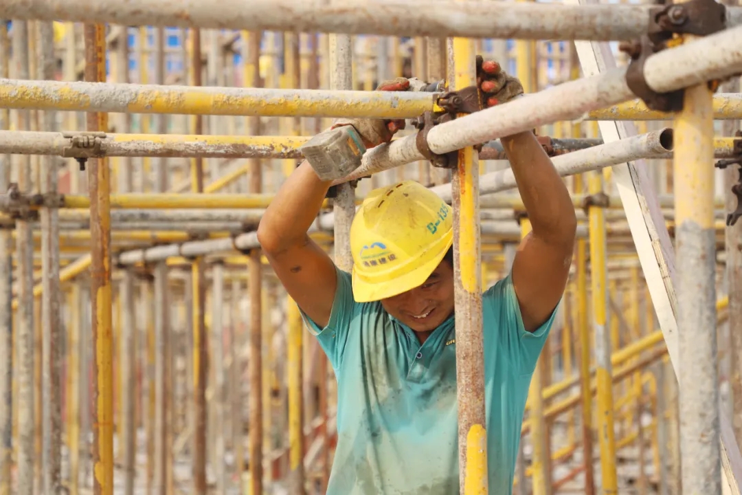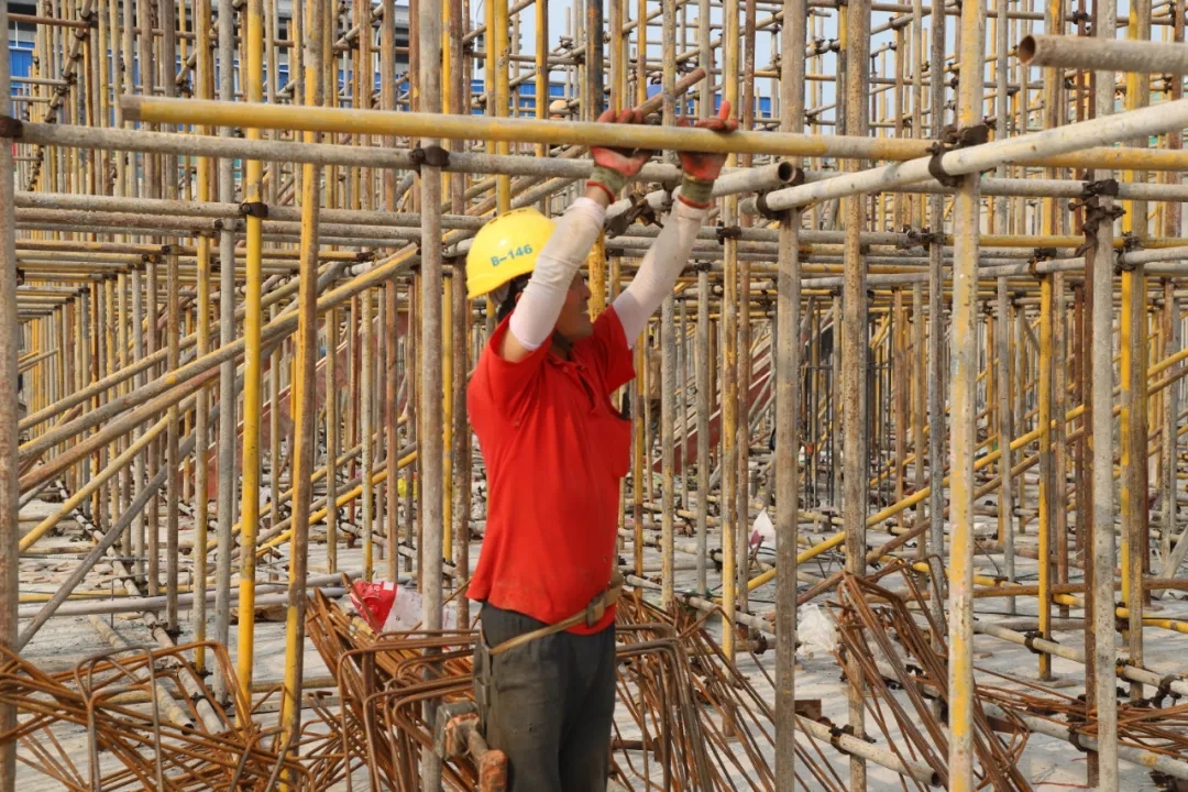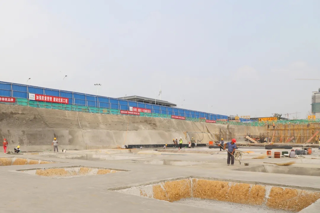 近日,亳州高鐵南站金融商務(wù)中心項(xiàng)目施工現(xiàn)場(chǎng),工人正緊鑼密鼓地進(jìn)行施工。