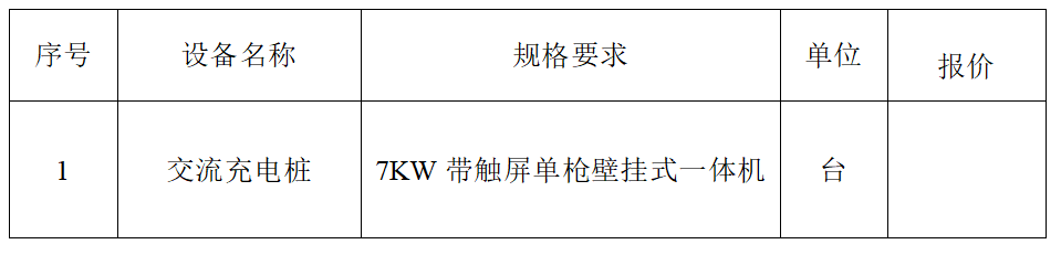 (九)詢價(jià)人要求:在合同期限內(nèi)詢價(jià)人如因需求采購(gòu)立柱式交流充電樁,每臺(tái)按壁掛式中標(biāo)價(jià)格基礎(chǔ)上另加150元執(zhí)行采購(gòu)。