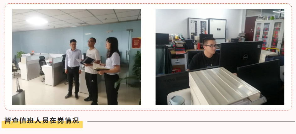 中秋節(jié)期間,為牢牢守住節(jié)日“廉關(guān)”,鍥而不舍糾“四風(fēng)”樹新風(fēng),持續(xù)鞏固中央八項(xiàng)規(guī)定精神堤壩,嚴(yán)防“四風(fēng)”問題反彈回潮,集團(tuán)紀(jì)委強(qiáng)化監(jiān)督的再監(jiān)督,緊盯薄弱環(huán)節(jié),對集團(tuán)作風(fēng)建設(shè)、安全生產(chǎn)、項(xiàng)目建設(shè)、人員值守、公車封存等情況進(jìn)行監(jiān)督檢查,著力打造良好的假期工作作風(fēng)。
