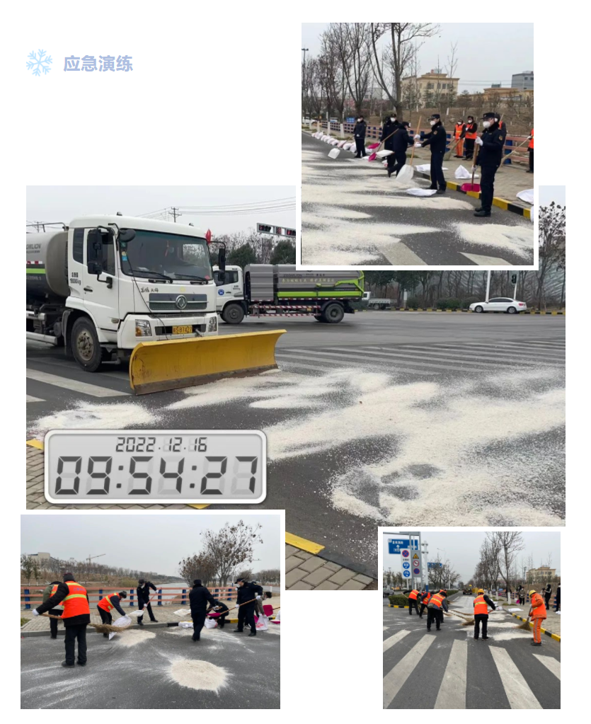 演練開始,接到情況通報后,立即啟動應急預案,研究搶險對策,出動除雪鏟車1輛,噴灑融雪劑,人機結合快速有序推進融清雪工作。演練現(xiàn)場,各參演人員反應迅速、處置得當,達到了以演促練、以練促戰(zhàn)的預期效果。