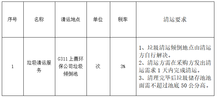 (三)交貨期:清運方需在采購方發(fā)出清運需求1天內完成清運。