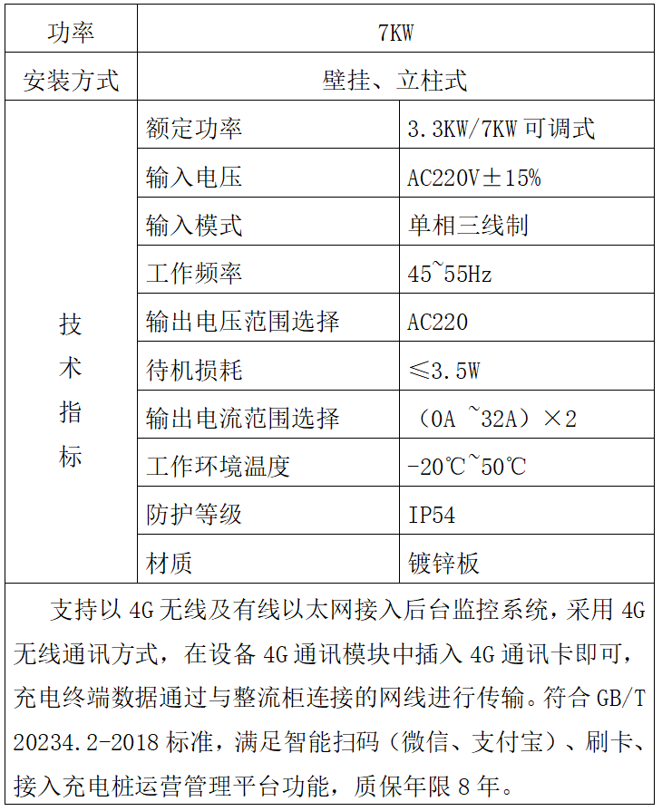 (二)詢價范圍:為詢價人提供7KW交流充電樁的供貨、包裝、運輸、售后服務(wù)、技術(shù)支持等。設(shè)備參數(shù)、規(guī)格及要求詳見供貨要求。