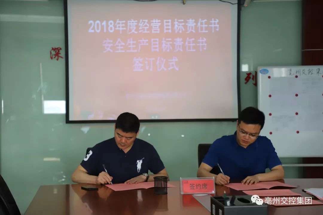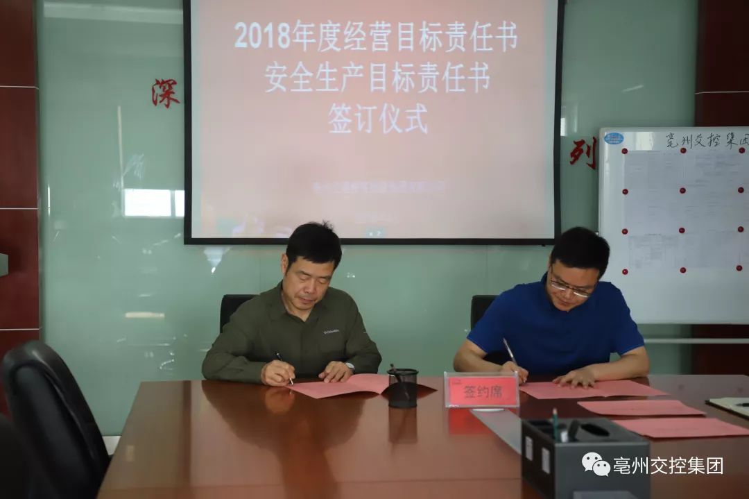 4月28日上午,亳州交控集團2018年度經(jīng)營目標(biāo)責(zé)任書和安全生產(chǎn)目標(biāo)責(zé)任書簽訂儀式在八樓會議室舉行。集團公司領(lǐng)導(dǎo)班子,各子公司、各部門負(fù)責(zé)人員出席儀式。