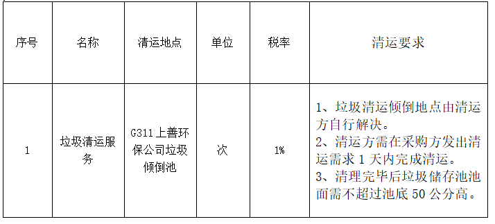 (三)交貨期:清運(yùn)方需在采購(gòu)方發(fā)出清運(yùn)需求1天內(nèi)完成清運(yùn)。