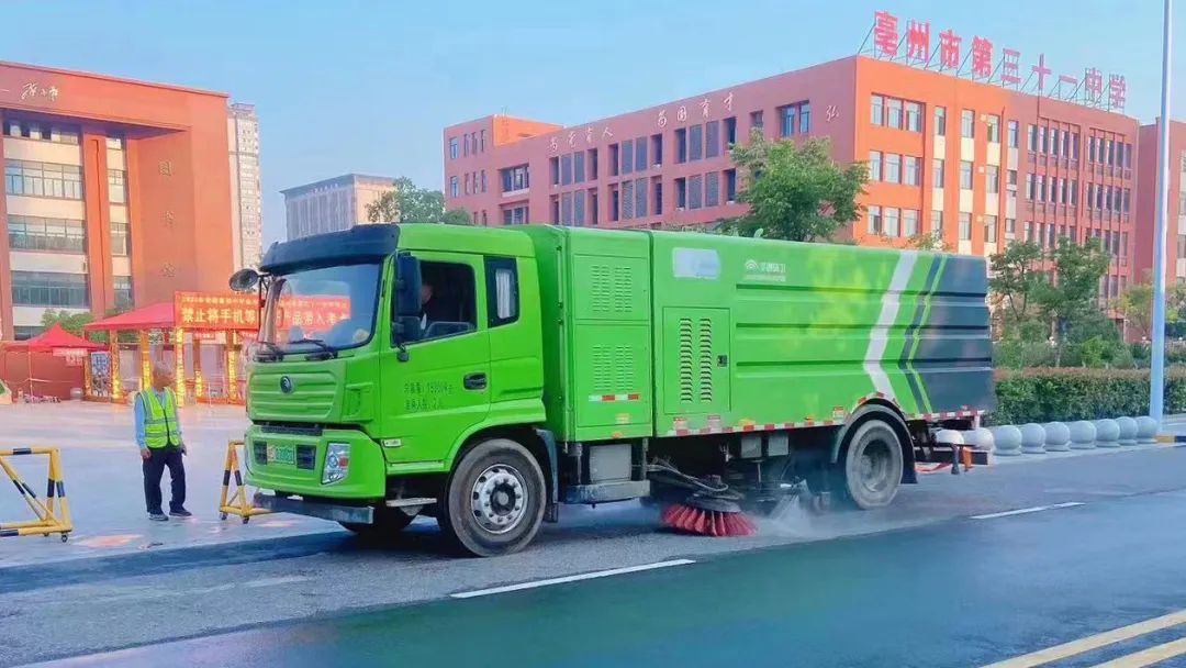 為營(yíng)造清潔、舒適、安靜的考試環(huán)境,上善環(huán)保公司所有環(huán)衛(wèi)作業(yè)車輛提前上路,實(shí)施“消音”作業(yè),考點(diǎn)周邊作業(yè)時(shí)禁止鳴笛,灑水車關(guān)閉提示音、減速慢行。環(huán)衛(wèi)片區(qū)經(jīng)理提前排查考點(diǎn)周邊衛(wèi)生情況,組織環(huán)衛(wèi)工人對(duì)垃圾桶、果殼箱及周邊地面進(jìn)行深度保潔,考試期間增派保潔人員,及時(shí)撿拾煙頭、廢紙、小廣告等,確保考場(chǎng)周邊清爽潔凈。