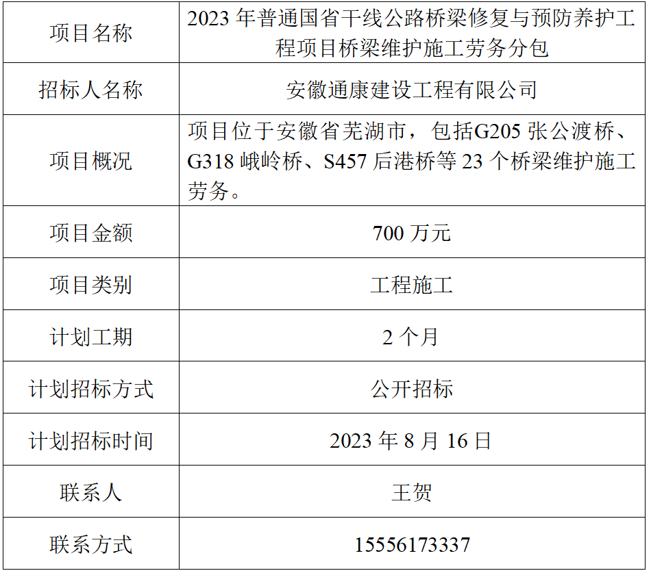 2023年普通國(guó)省干線公路橋梁修復(fù)與預(yù)防養(yǎng)護(hù)工程項(xiàng)目橋梁維護(hù)施工勞務(wù)分包招標(biāo)計(jì)劃發(fā)布