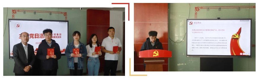 集團(tuán)黨委委員、副總經(jīng)理王翔宇同志為10月份入黨的同志集體頒發(fā)了“政治生日賀卡”。黨員孟凡超同志結(jié)合工作實(shí)際,以《學(xué)習(xí)習(xí)近平總書(shū)記關(guān)于交通運(yùn)輸?shù)恼撌鲋煌◤?qiáng)國(guó)建設(shè)》為題講授微型黨課,號(hào)召全體黨員干部深入貫徹落實(shí)習(xí)近平總書(shū)記關(guān)于交通運(yùn)輸?shù)闹匾撌鼍瘢詫?shí)干擔(dān)當(dāng)為打造“現(xiàn)代綜合型交通產(chǎn)業(yè)集團(tuán)”添磚加瓦。