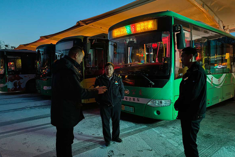 公交駕駛員提前到崗,巡查車輛預(yù)熱準(zhǔn)備和例保檢查,車隊管理人員現(xiàn)場調(diào)度指揮,確保公交車準(zhǔn)時、準(zhǔn)點發(fā)車;通康公司進(jìn)一步強(qiáng)化了夜間、清晨等特殊時段和橋梁、彎道陡坡、連續(xù)上下坡等重點路段的安全巡查,優(yōu)化了現(xiàn)場決策部署和指揮調(diào)度機(jī)制,為應(yīng)對極端天氣快速響應(yīng)、高效處置提供了有力保障。