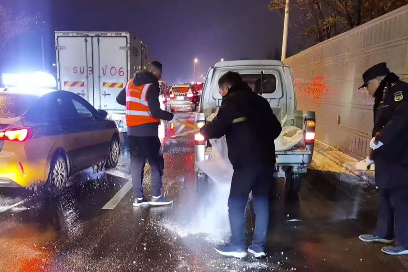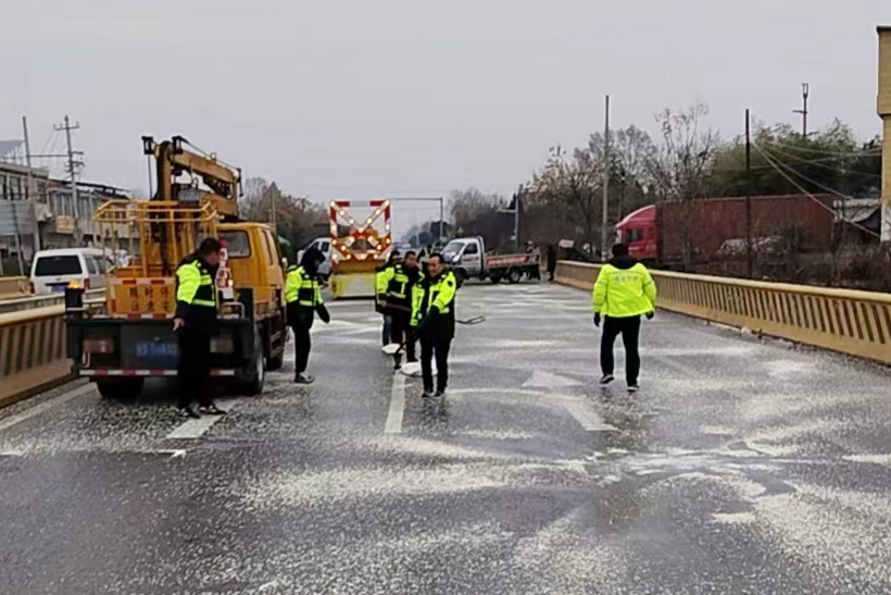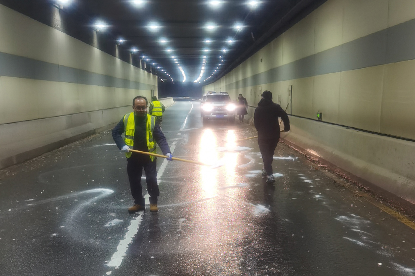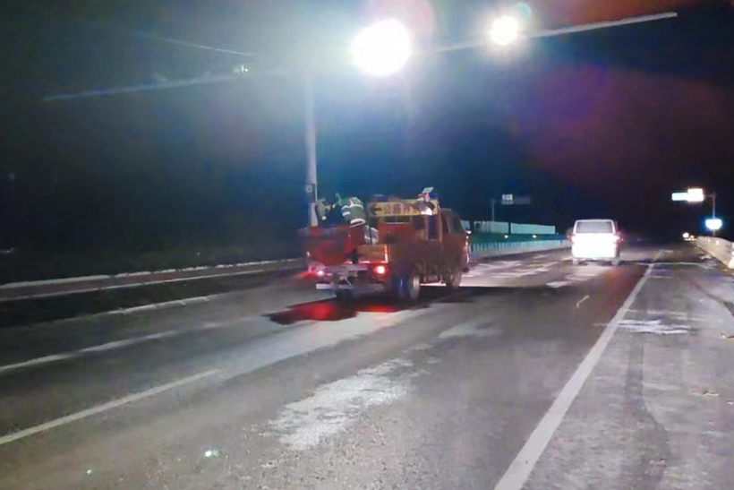 根據(jù)降雪和路面結(jié)冰情況,上善環(huán)保公司及時在城區(qū)主干道和湯王、建安兩條隧道鋪灑融雪劑,保障市民安全出行;通達(dá)利公司、通康公司積極與交警、路政部門保持協(xié)調(diào)聯(lián)動,對易結(jié)冰路段開展預(yù)防性撒布融雪劑,出動管養(yǎng)人員20余人、養(yǎng)護(hù)機(jī)械6臺、撒布里程超過150公里,撒布融雪劑近5噸,全力保障309省道安全暢通。