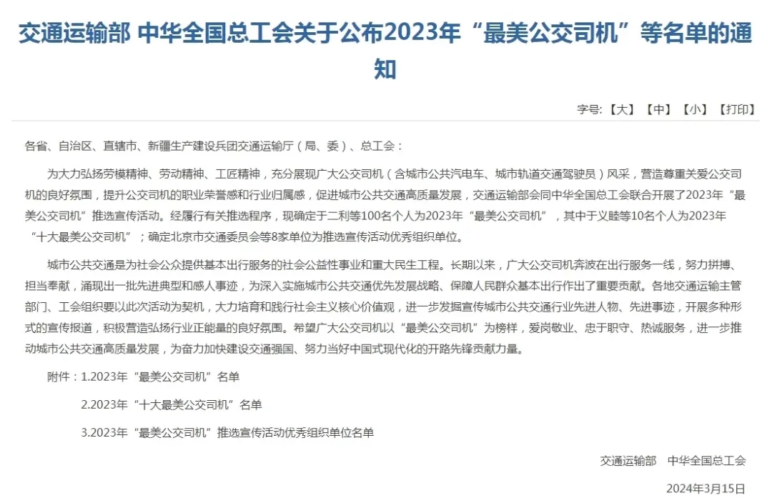 近日,交通運輸部、中華全國總工會聯(lián)合發(fā)布2023年“最美公交司機”等名單,亳州公交駕駛員高團結(jié)獲評“最美公交司機”。