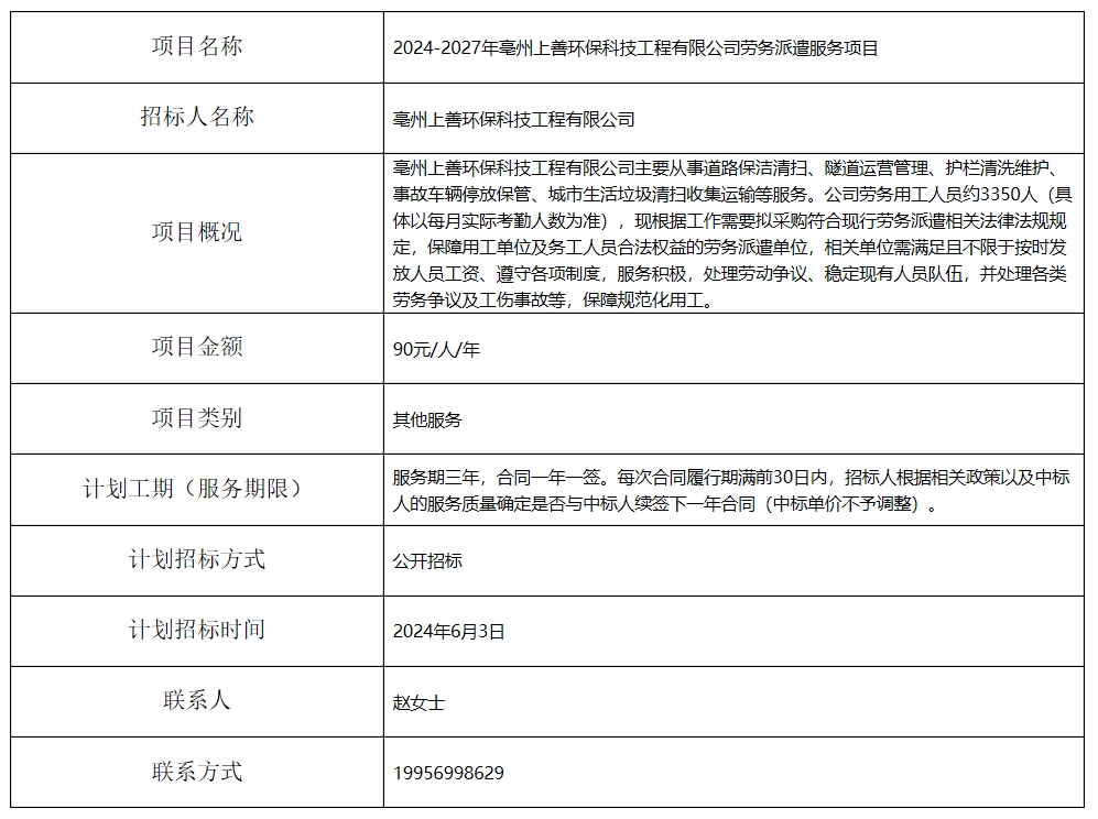 2024-2027年亳州上善環(huán)??萍脊こ逃邢薰緞趧?wù)派遣服務(wù)項(xiàng)目招標(biāo)計(jì)劃