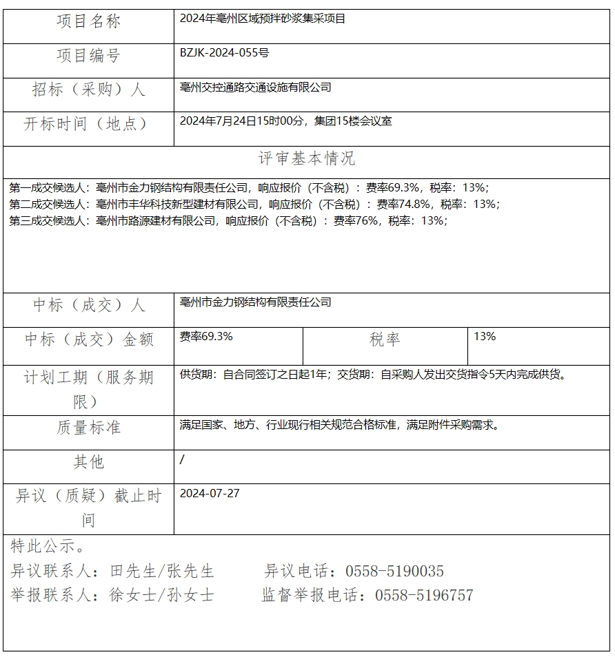2024年亳州區(qū)域預(yù)拌砂漿集采項(xiàng)目中標(biāo)(成交)結(jié)果公示
