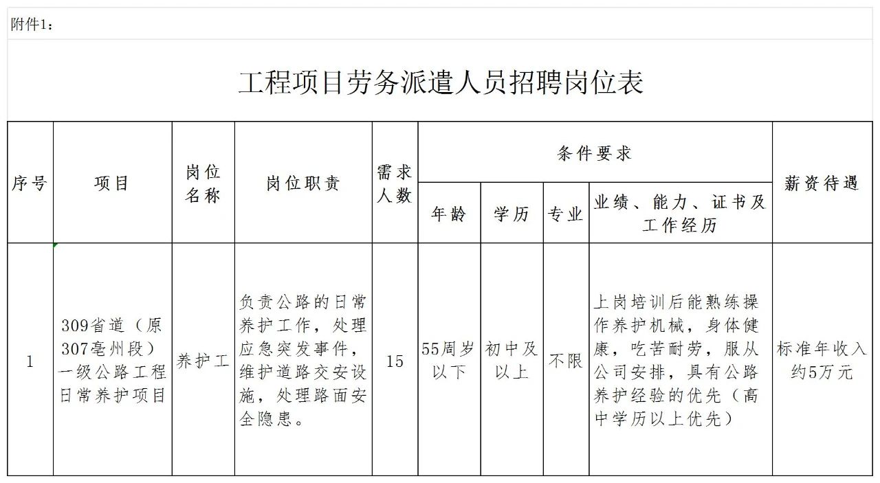 安徽通康建設工程有限公司(亳州交通投資控股集團有限公司下屬全資子公司)招聘15名勞務派遣人員,勞務派遣人員用工期隨項目工期確定,項目結(jié)束后,勞務派遣人員及時解散?,F(xiàn)將有關(guān)事項公告如下:
