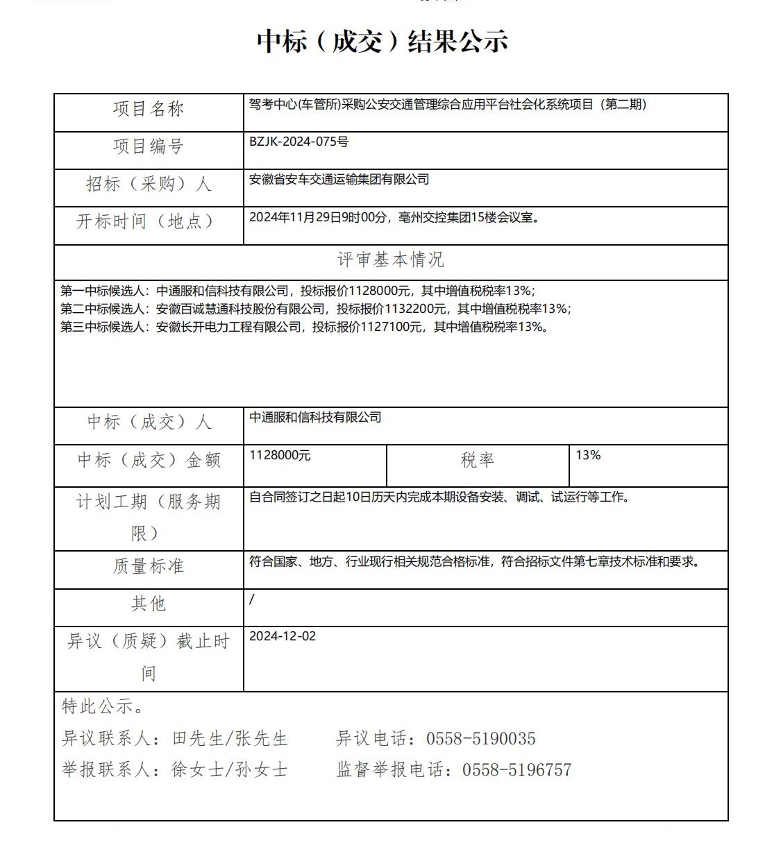 駕考中心(車管所)采購公安交通管理綜合應(yīng)用平臺(tái)社會(huì)化系統(tǒng)項(xiàng)目(第二期)中標(biāo)(成交)結(jié)果公示