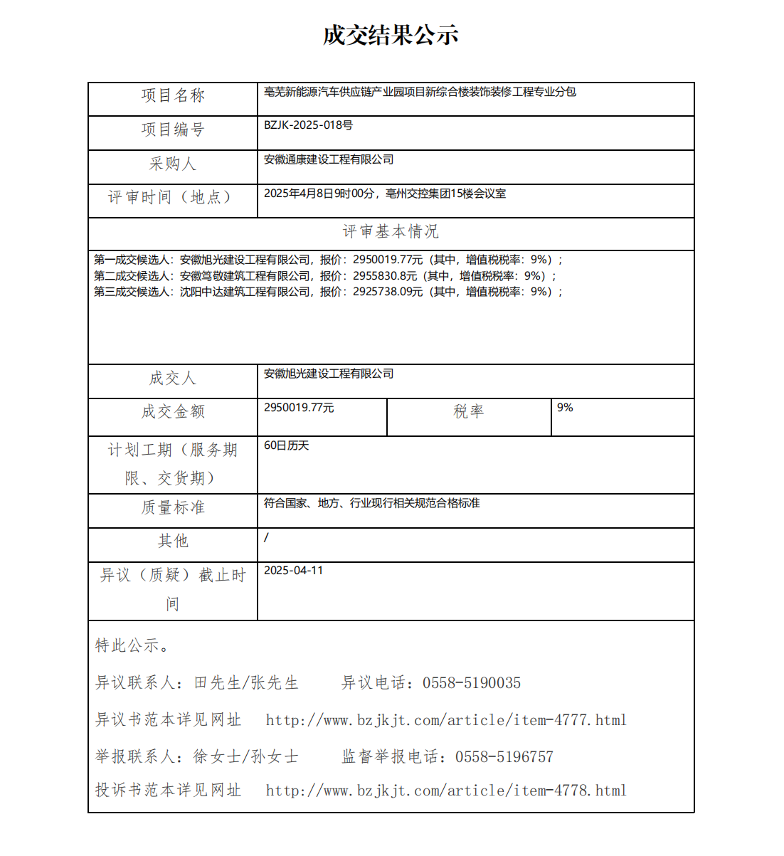 亳蕪新能源汽車供應(yīng)鏈產(chǎn)業(yè)園項(xiàng)目新綜合樓裝飾裝修工程專業(yè)分包成交結(jié)果公示