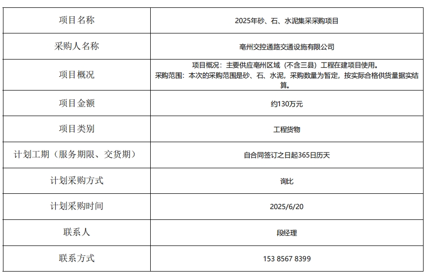 2025年砂、石、水泥集采采購(gòu)項(xiàng)目采購(gòu)計(jì)劃