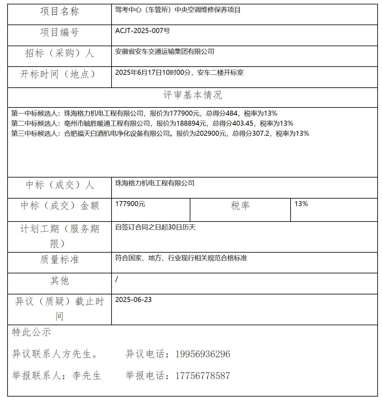 駕考中心(車(chē)管所)中央空調(diào)維修保養(yǎng)項(xiàng)目中標(biāo)(成交)結(jié)果公示
