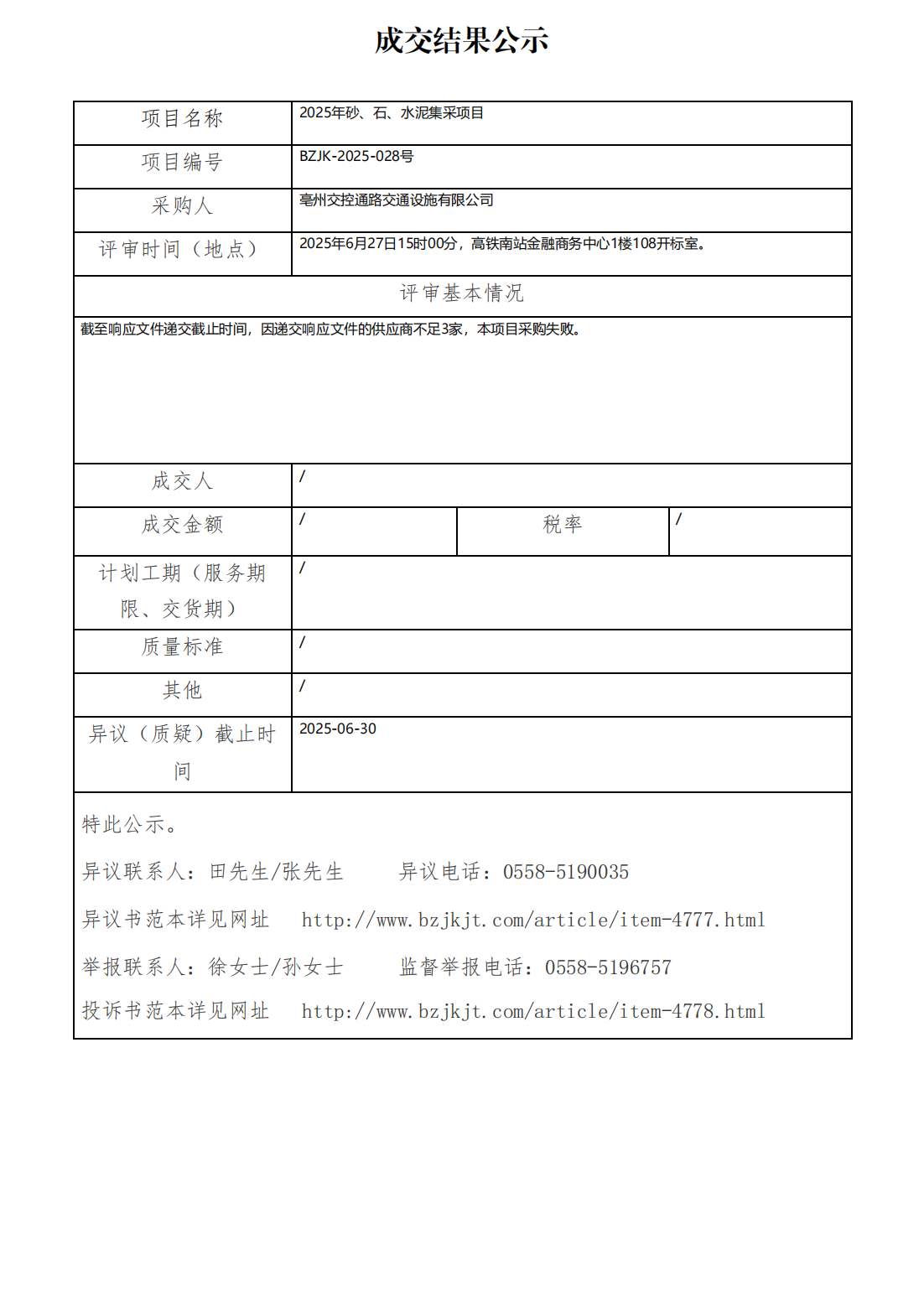 2025年砂、石、水泥集采項目成交結(jié)果公示