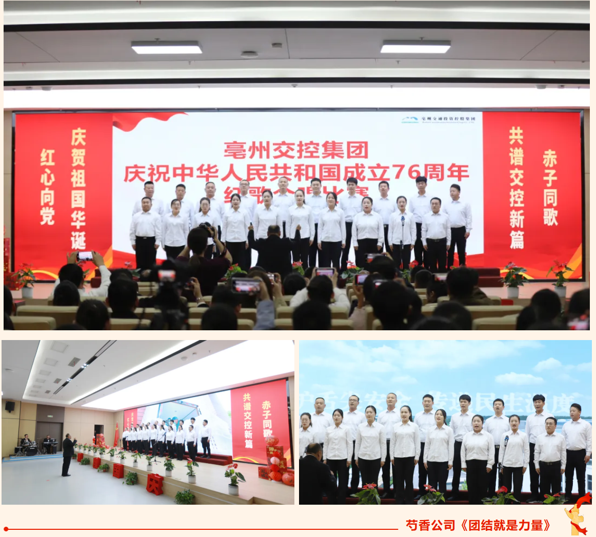 為熱烈慶祝中華人民共和國(guó)成立76周年,唱響愛(ài)黨愛(ài)國(guó)主旋律,10月24日下午,由交控集團(tuán)工會(huì)主辦、上善環(huán)保公司承辦的“慶祝中華人民共和國(guó)成立76周年”主題紅歌合唱比賽在高鐵南站商務(wù)中心報(bào)告廳隆重舉行。集團(tuán)黨委書記、董事長(zhǎng)魏孛及全體領(lǐng)導(dǎo)班子成員出席活動(dòng),與集團(tuán)干部職工代表齊聚一堂,共同欣賞了這場(chǎng)激情澎湃的紅色音樂(lè)盛宴。