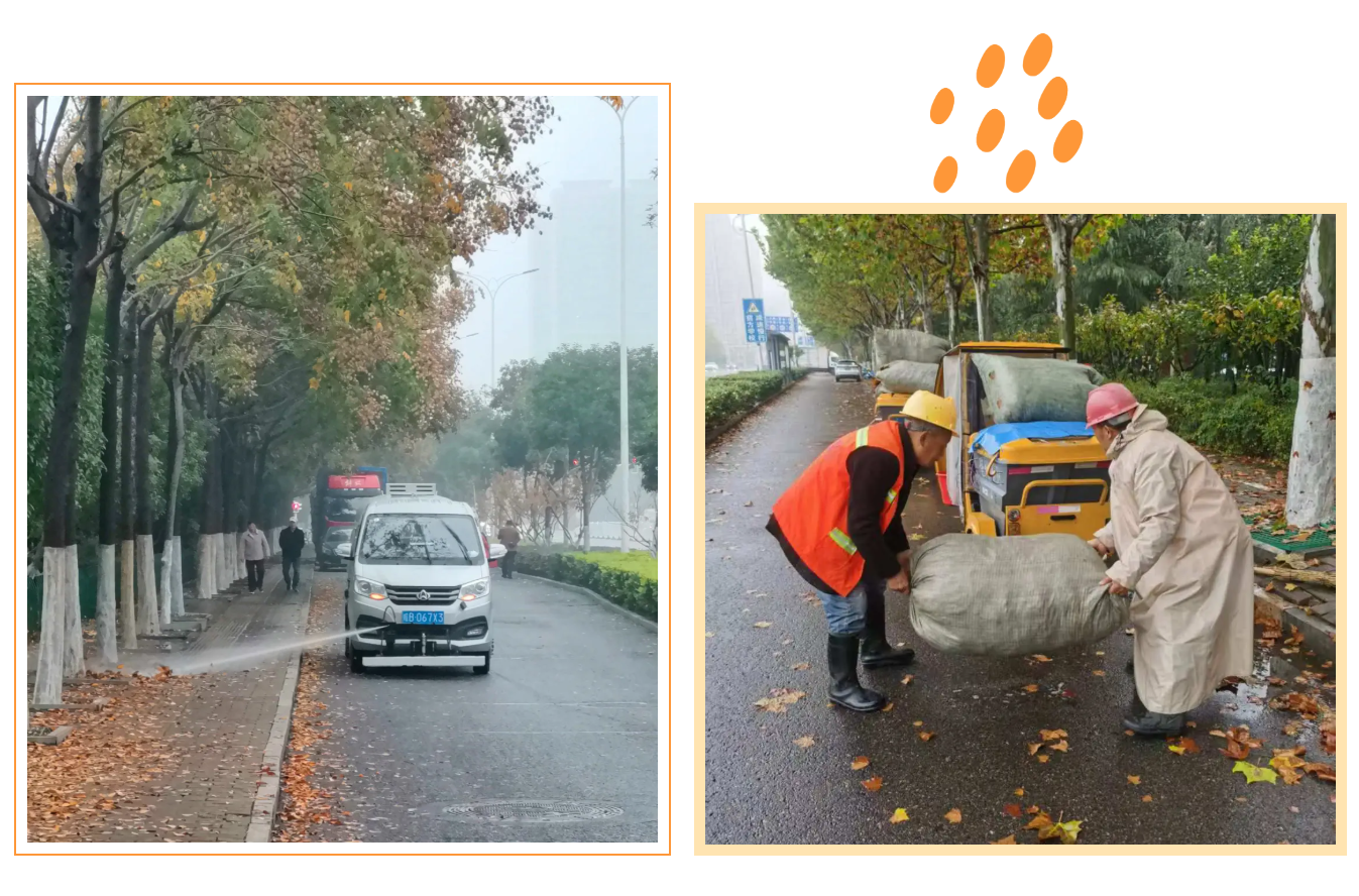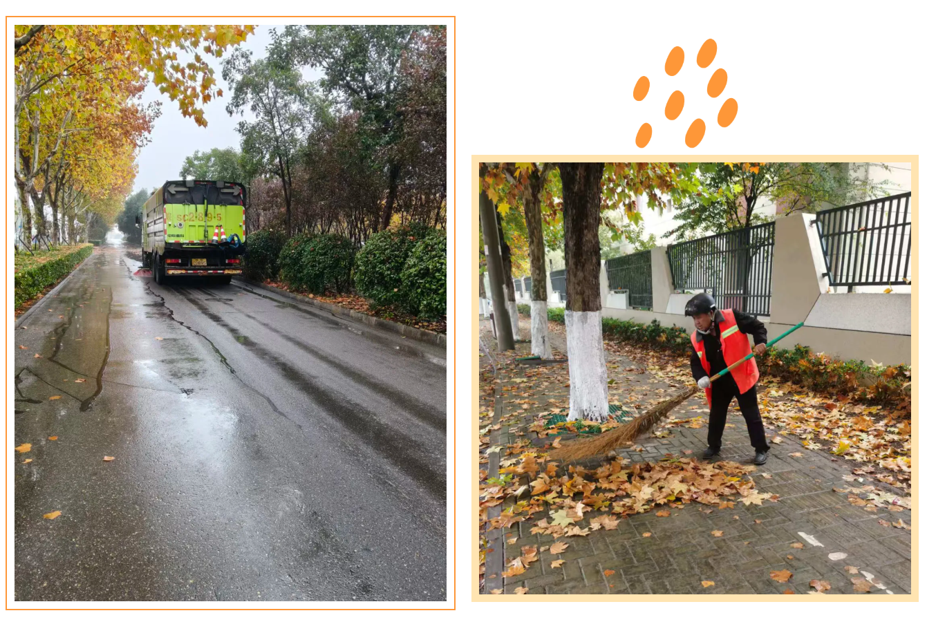 針對落葉集中、人流量大的重點區(qū)域,增派保潔人員與收運車輛,適當延長作業(yè)時間,采取“隨掃、隨清、隨運”的流水線作業(yè)方式,確保落葉即產(chǎn)即清、日產(chǎn)日清,最大限度減少對市民出行的影響,維護良好市容環(huán)境。