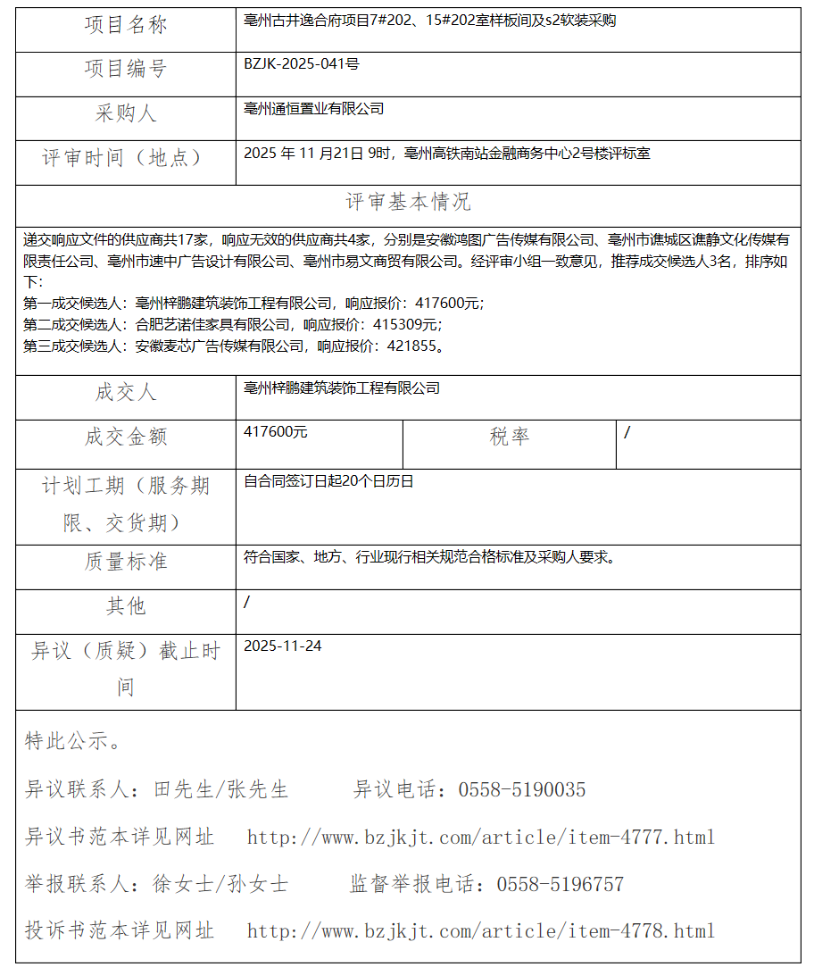 亳州古井逸合府項(xiàng)目7#202、15#202室樣板間及s2軟裝采購(gòu)成交結(jié)果公示
