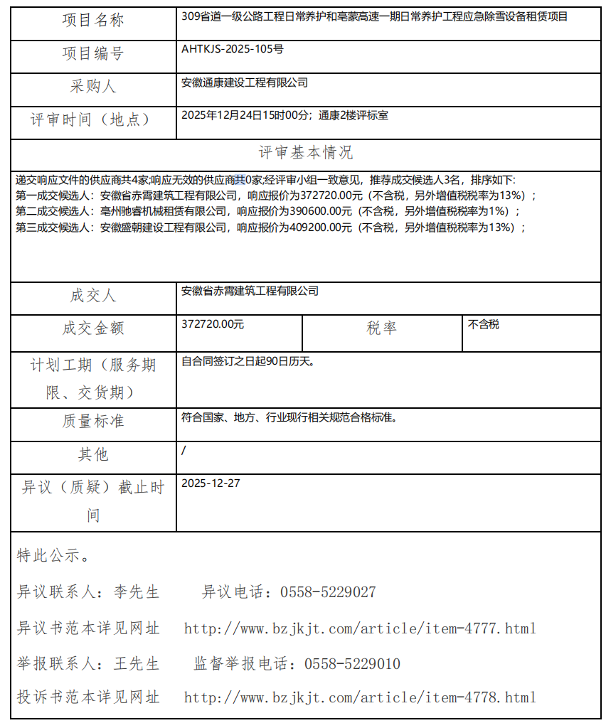309省道一級(jí)公路工程日常養(yǎng)護(hù)和亳蒙高速一期日常養(yǎng)護(hù)工程應(yīng)急除雪設(shè)備租賃項(xiàng)目成交結(jié)果公示