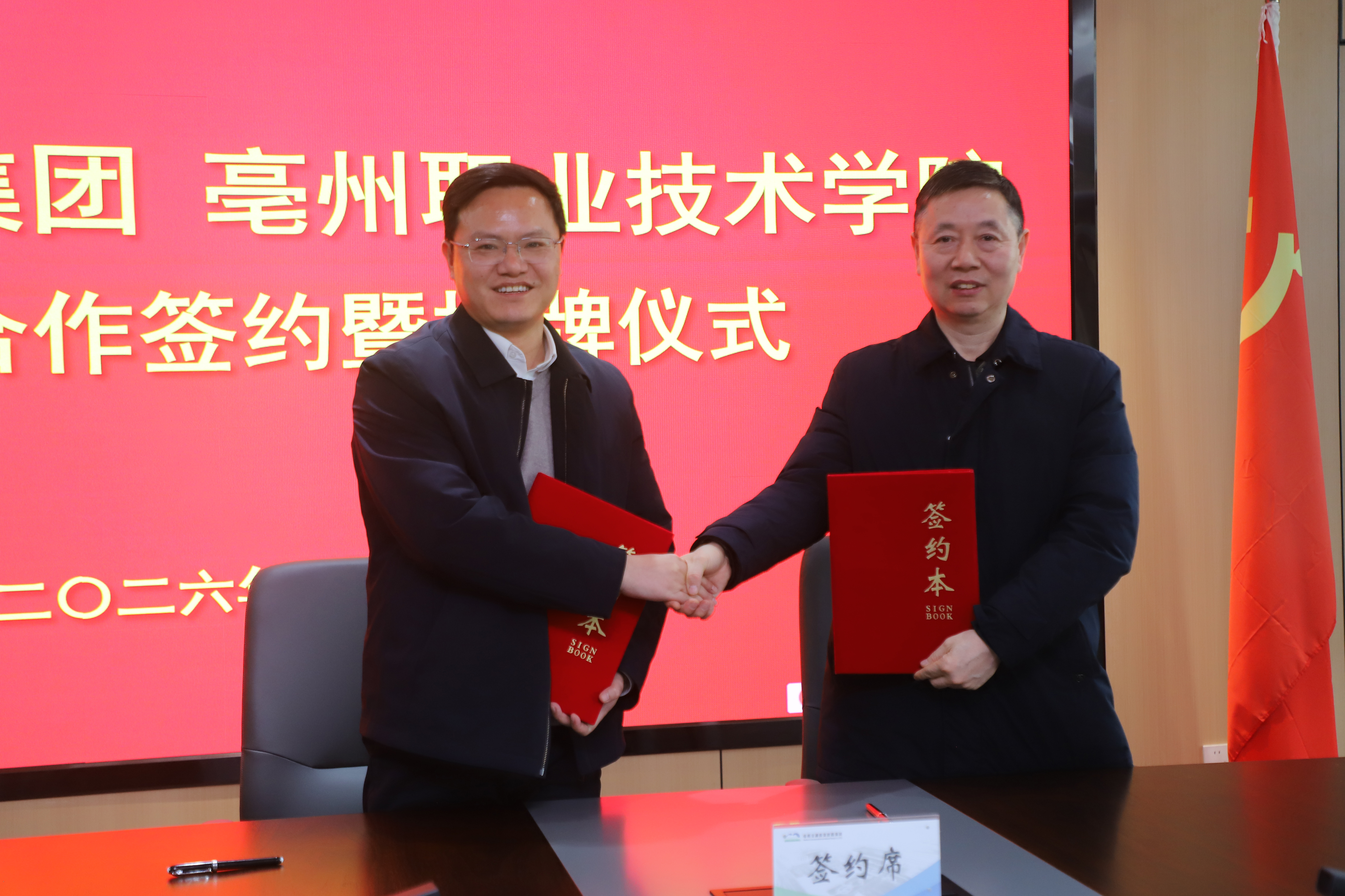 在與會人員的共同見證下,亳州交控集團與亳州職業(yè)技術(shù)學(xué)院正式簽署《校企合作協(xié)議》,并為“校企合作基地”揭牌。這一儀式的完成,標志著雙方在產(chǎn)教融合、協(xié)同育人方面邁出堅實一步。