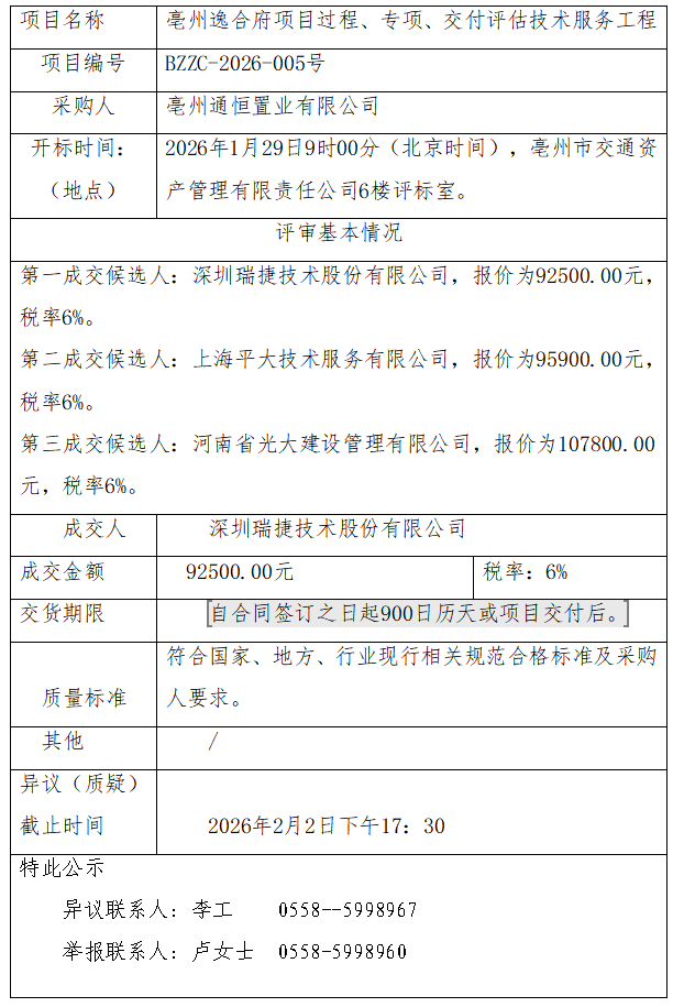 亳州逸合府項(xiàng)目過程、專項(xiàng)、交付評估技術(shù)服務(wù)工程成交結(jié)果公示
