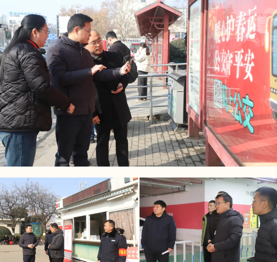 魏孛一行先后來到火車站、高鐵南站等公交綜合樞紐站,實地檢查春運期間公交線路設(shè)置、公交運力安排及便民服務(wù)措施落實情況。他強調(diào),要密切關(guān)注客流變化,科學(xué)合理調(diào)度公交車輛,針對火車站、高鐵站等重點區(qū)域增派機(jī)動運力,避免出現(xiàn)乘客長時間等待或車輛擁擠的情況。同時,要加強公交駕駛員文明行車教育,用好“公交便民服務(wù)廳”服務(wù)窗口,增設(shè)便民服務(wù)物品,做好志愿導(dǎo)乘服務(wù),確保返鄉(xiāng)人員出行順暢。