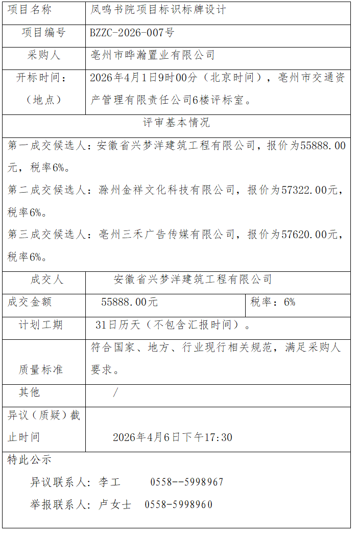 鳳鳴書院項(xiàng)目標(biāo)識標(biāo)牌設(shè)計(jì)成交結(jié)果公示