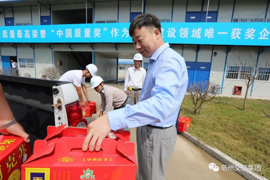 在亳州公路客運(yùn)高鐵樞紐站,集團(tuán)領(lǐng)導(dǎo)向堅(jiān)持在施工一線的交控員工致以中秋的問候。集團(tuán)領(lǐng)導(dǎo)叮囑大家一定要做好各項(xiàng)安全工作,保質(zhì)量、保安全、保工期,確保亳州公路客運(yùn)高鐵樞紐站項(xiàng)目的順利推進(jìn)。