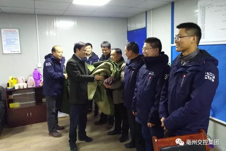 在對南站項目持續(xù)靠前指揮的同時,考慮到項目主體建設(shè)施工的商砼澆筑幾乎全部在夜間進行,且冬季入夜的氣溫低至-7至-10度,集團領(lǐng)導(dǎo)始終牽掛著堅守項目一線人員在夜間防寒保暖和身體健康,集團黨委書記、董事長王鍇,副書記、總經(jīng)理劉超在深入工地一線時多次提出要做好夜間安全生產(chǎn)和防寒保暖工作,要求根據(jù)情況夜間適時增加工作餐并決定為集團派駐代表全員配備棉衣。1月19日晚,集團黨委副書記、紀(jì)委書記魏孛帶領(lǐng)紀(jì)檢審計部、辦公室工作人員為正在討論頂板澆筑的集團一線技術(shù)人員每人送上一條棉大衣。接過帶著集團期望和關(guān)懷的棉衣,一線人員表示,決不辜負(fù)集團重托,保質(zhì)保量完成任務(wù)。