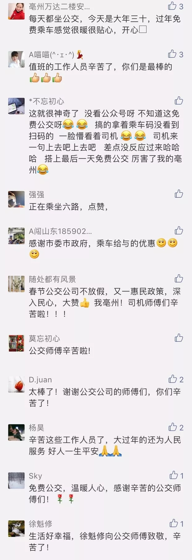 談起此次活動,乘客們都表示有不少話想說,因春節(jié)期間正值春運高峰,許多返鄉(xiāng)的乘客選乘亳州公交時,一看到投幣口都表示疑惑,聽到公交駕駛員的解釋后,他們不無感嘆地說,還是回家好呀!這是我們回到家收到的第一份禮物,太溫暖了!