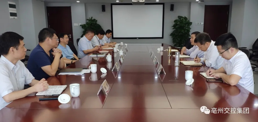 ??為學(xué)習(xí)高速公路項(xiàng)目推進(jìn)及運(yùn)營經(jīng)驗(yàn),6月19日上午,集團(tuán)黨委書記、董事長宋保眾一行赴省交控集團(tuán)拜訪交流。省交控集團(tuán)黨委副書記、總經(jīng)理錢東升,總經(jīng)理助理、投資發(fā)展部部長左敦禮,界阜蚌管理公司董事長曹興海等參加座談。